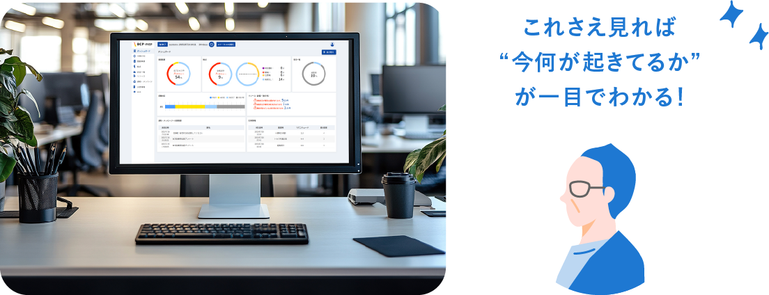 BCP-PREPは、あらかじめ“重要事業”に関係する人・設備・取引先を紐づけて登録しておくことで、「どの業務が止まりそうか」「なぜ止まっているのか」を可視化し、リアルタイムでの状況確認と、正確な意思決定をサポートします。