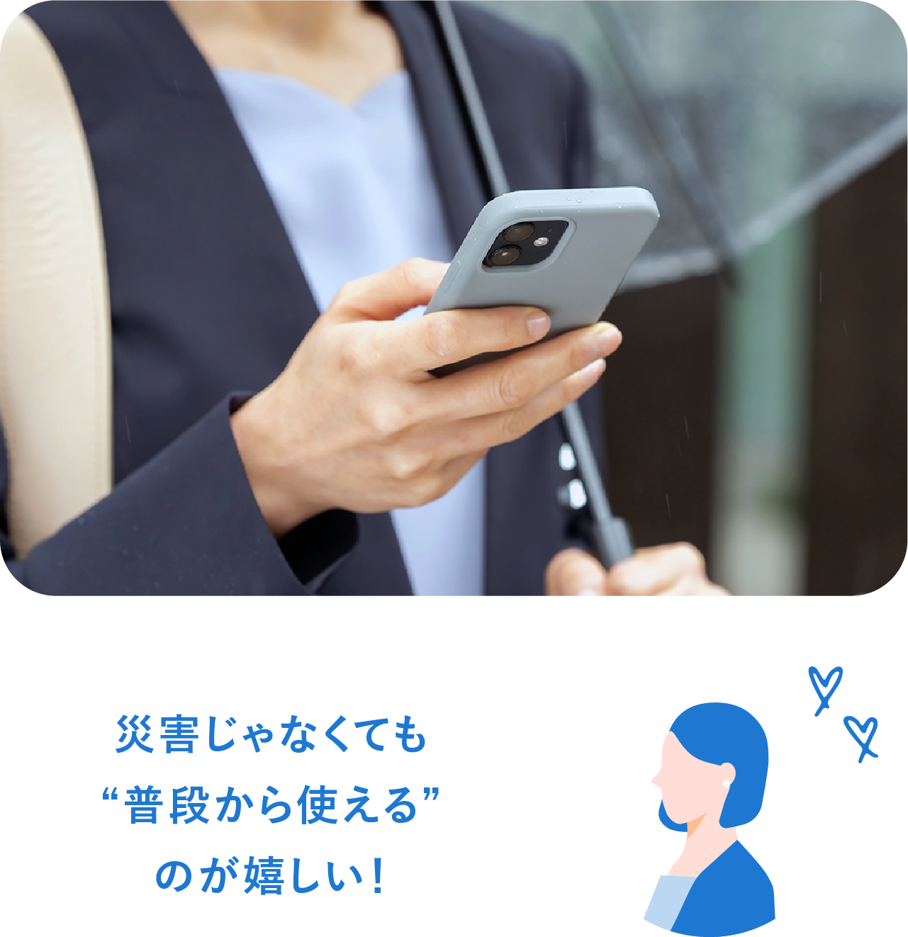 この他にも各種災害情報の通知受信や降雨情報の閲覧が可能です。